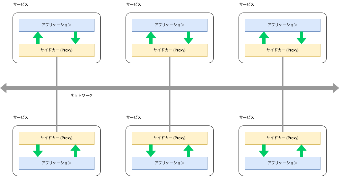 サイドカーパターンを単に適用しただけの場合、それぞれのサイドカーの構成はサービスそれぞれで行うのでしょうか。あるサービスが別のサービスに依存している場合に依存関係の変更があるたびにサイドカーの構成を変更してデプロイ作業が必要になるのでしょうか。もしそうだとすると冒頭のフレームワークのアップグレードの場合と同様に迅速な対応ができないという問題を抱えることになります。
