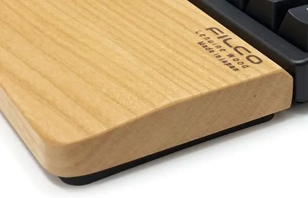 #キーボードはいいんですが、手首が痛くなってきたので新人君お勧めのリストレストを教えてもらい、「北海道産の天然無垢材を使用した純国産ウッドリストレスト」という文句に惹かれつつも4千円もするので2~3日悩みましたがやっぱり買ってしまいました。使ってみると、手のひらが当る部分に程よい傾斜がつけてあるのが良く、手触りも気持ちよくてとても良かったです。