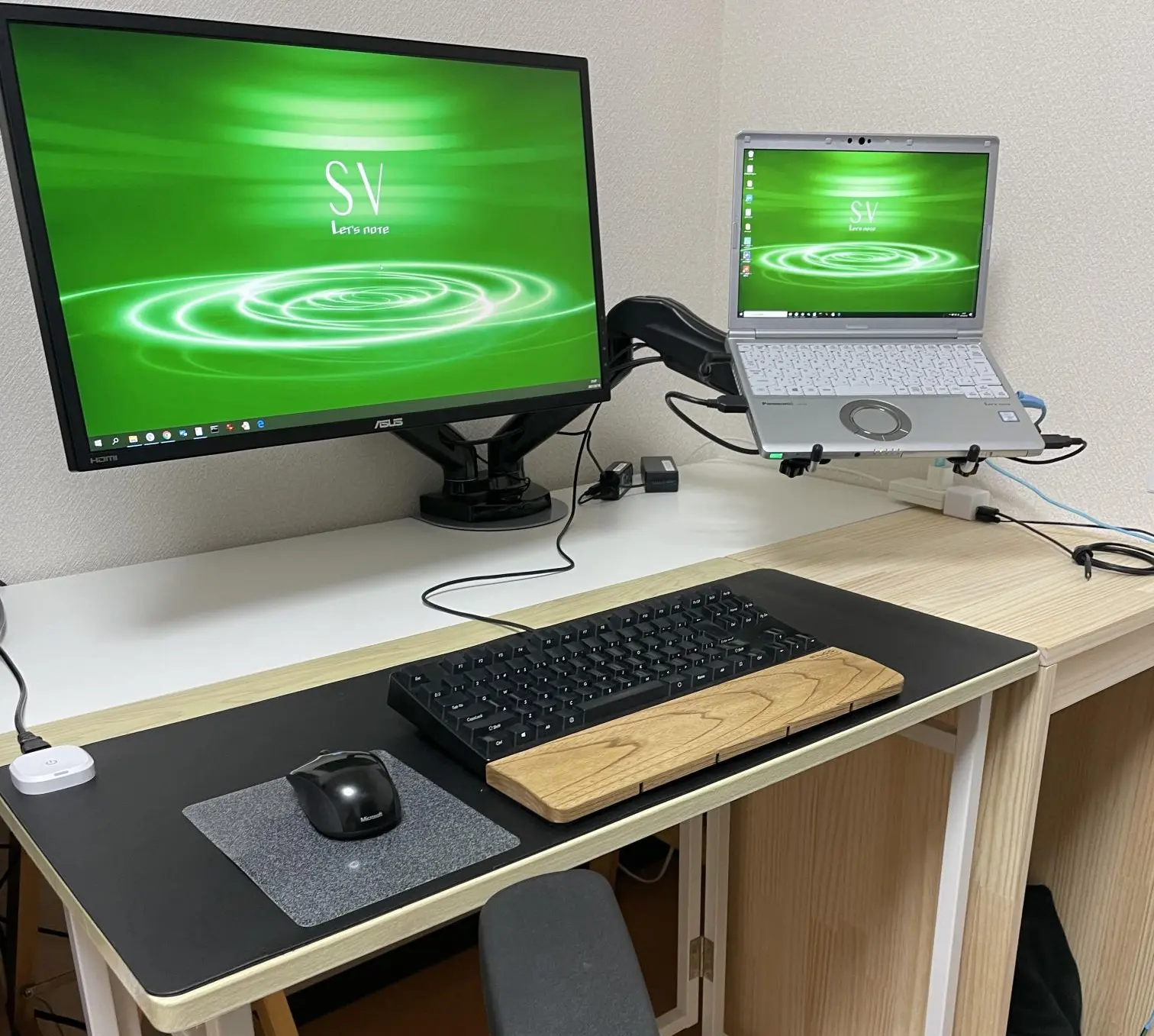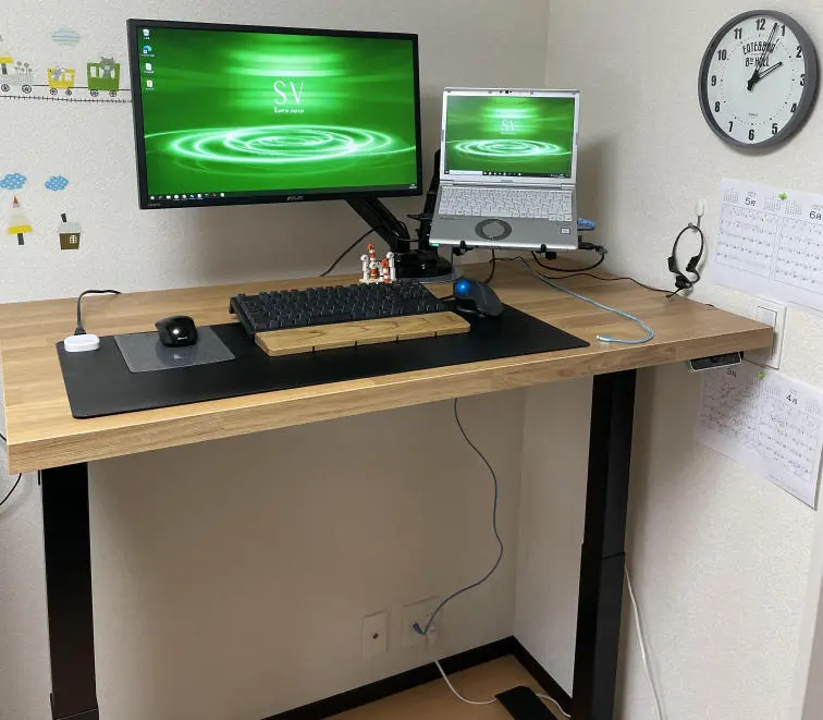 #当初は急にリモートになって必死でしたので、ありあわせの環境(古いディスプレイをつけたりマウスもあり合わせ)でした。