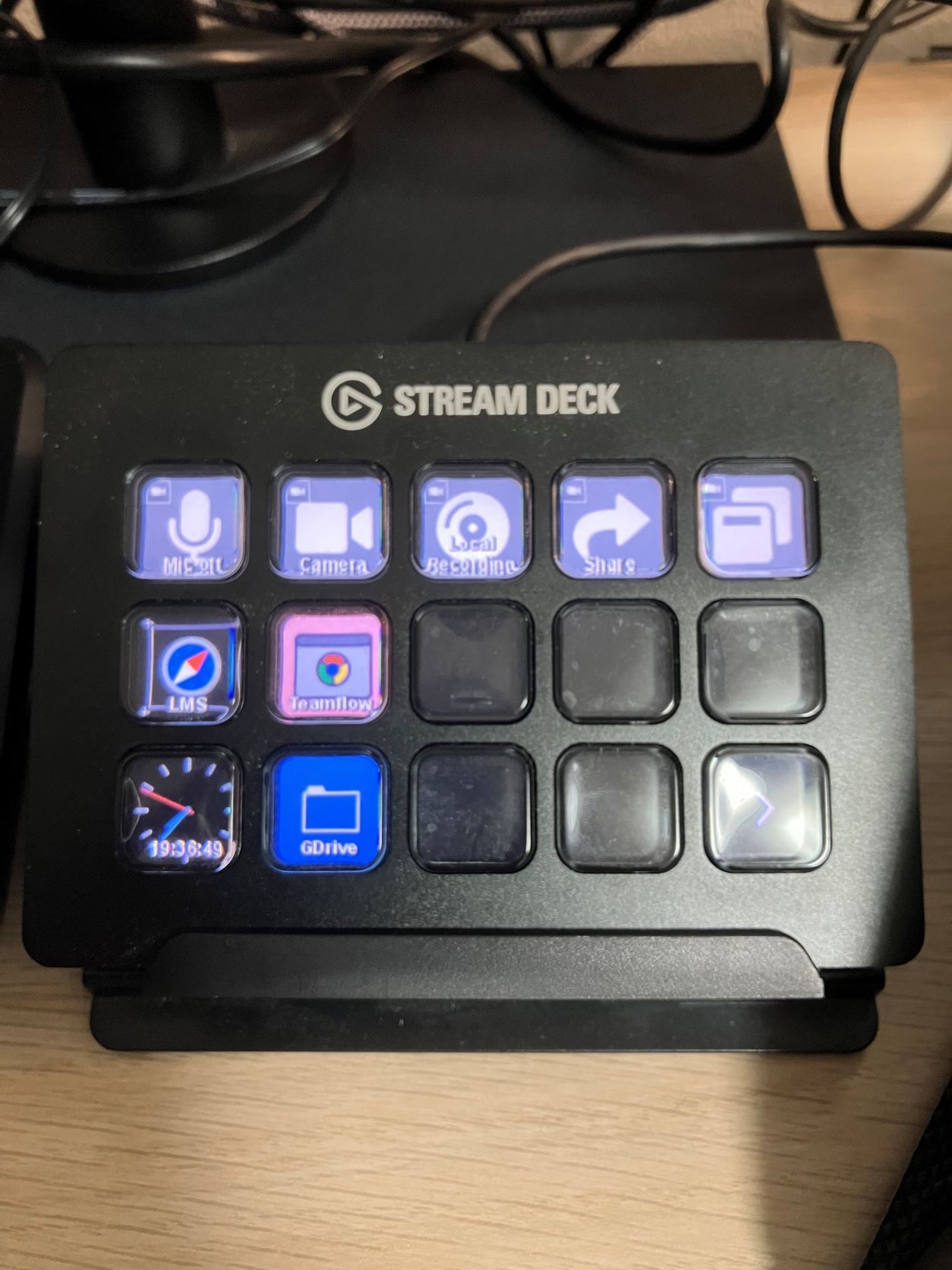 #STREAM DECKは、カスタマイズ可能なショートカットボタンというイメージです。よく動画配信者などが使用しているデバイスです(オンライン研修講師も、動画配信者とやっていることは近いですね)。