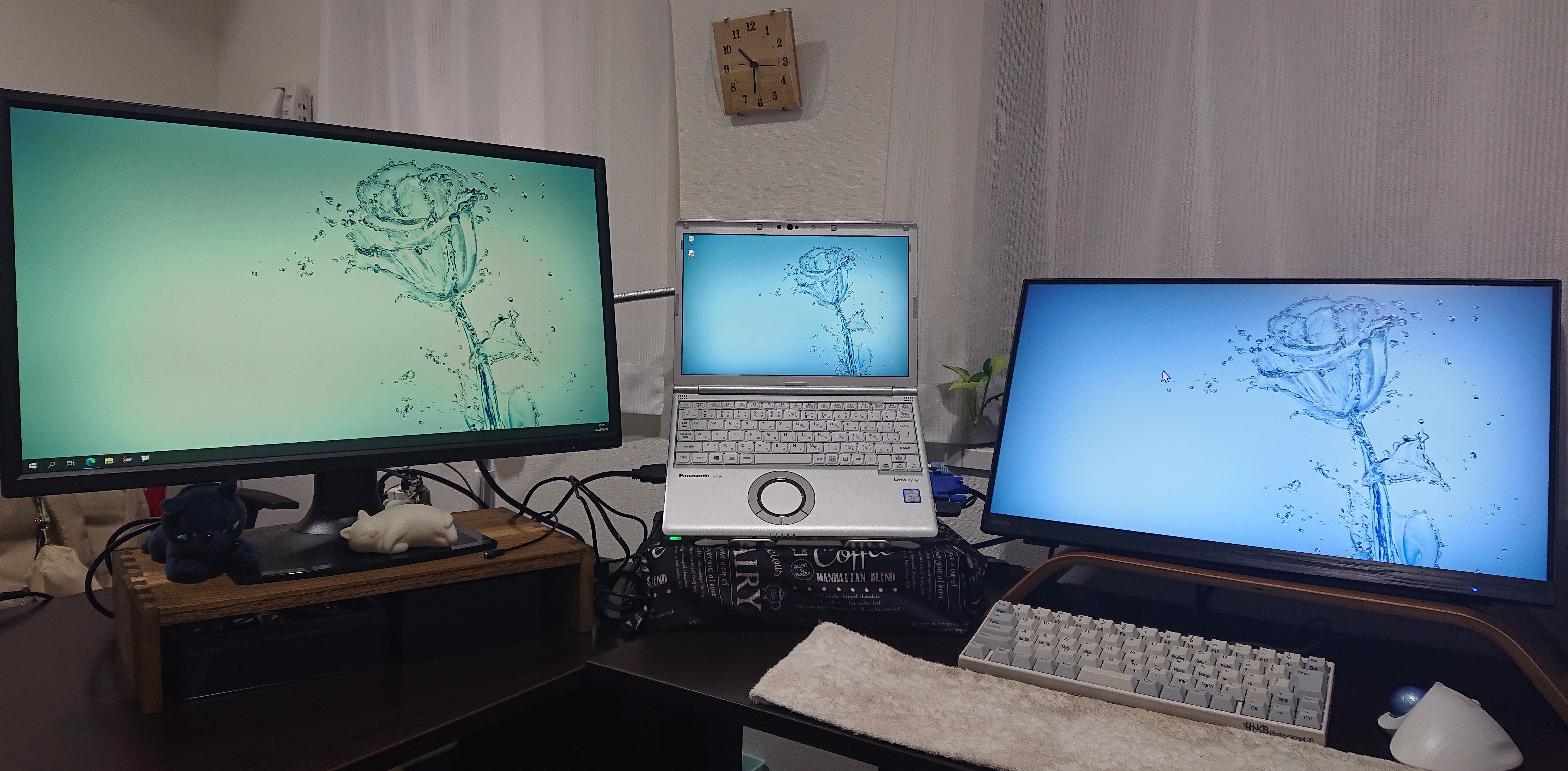 #きっとこの後もいろいろ変えたくなるんだろうなと思っています。最初の写真で明らかにわかるように左側のモニターは、かなり古くて色の出方が劣化しています。今のところ、画面共有したくないウィンドウの置き場所なので、あまり不都合はないのですが、そのうち4Kのモニターに変えようかなあ、と妄想中です。