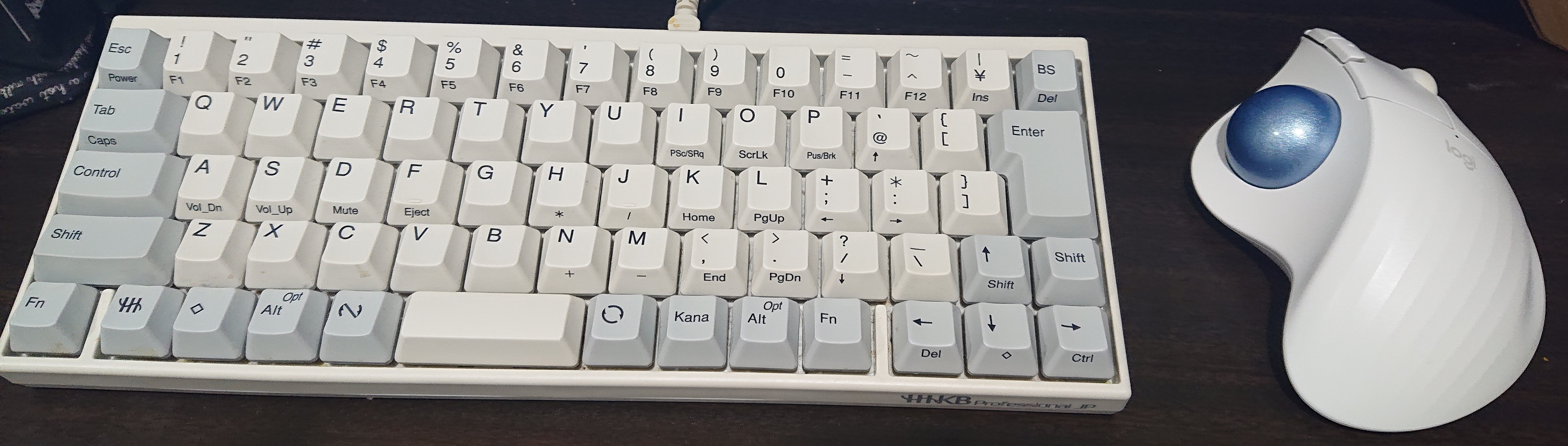 みんな大好きHHKB。黒でも無刻印でも英語キーボードでもなく、おとなしいほうだと思っていますが、CtrlキーやFunctionキーの使い方は、すっかりこれで慣れてしまいました。