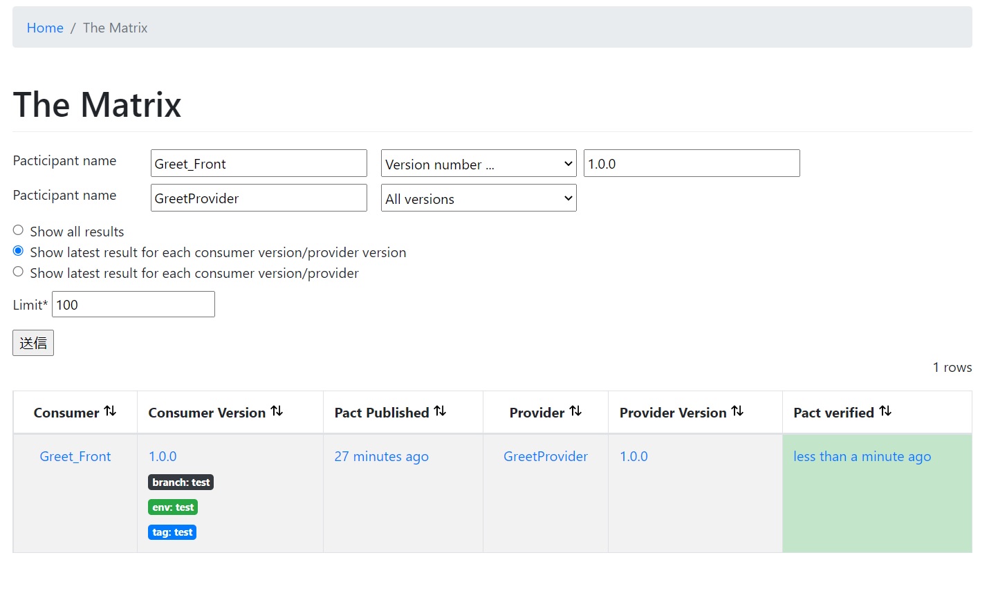 上記プロパティを実行時変数などで設定してProviderのテストを実行すると以下のようにContractの状態が検証済みに変化します。