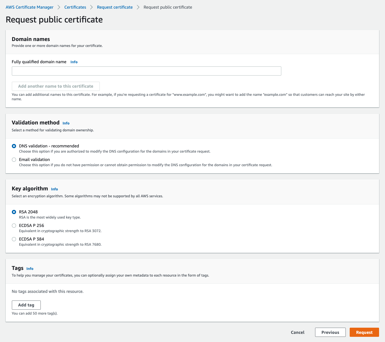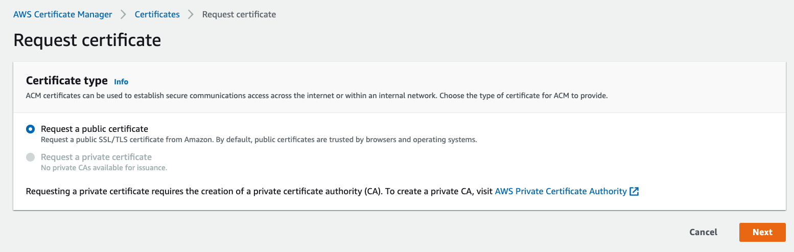 「Request a public certificate」を選択します。