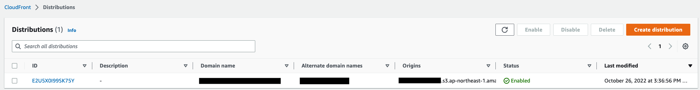 #CloudFront を使用してコンテンツを配信する場合、ディストリビューションを作成する必要があります。ディストリビューションについてはこちらを参考にしてください。