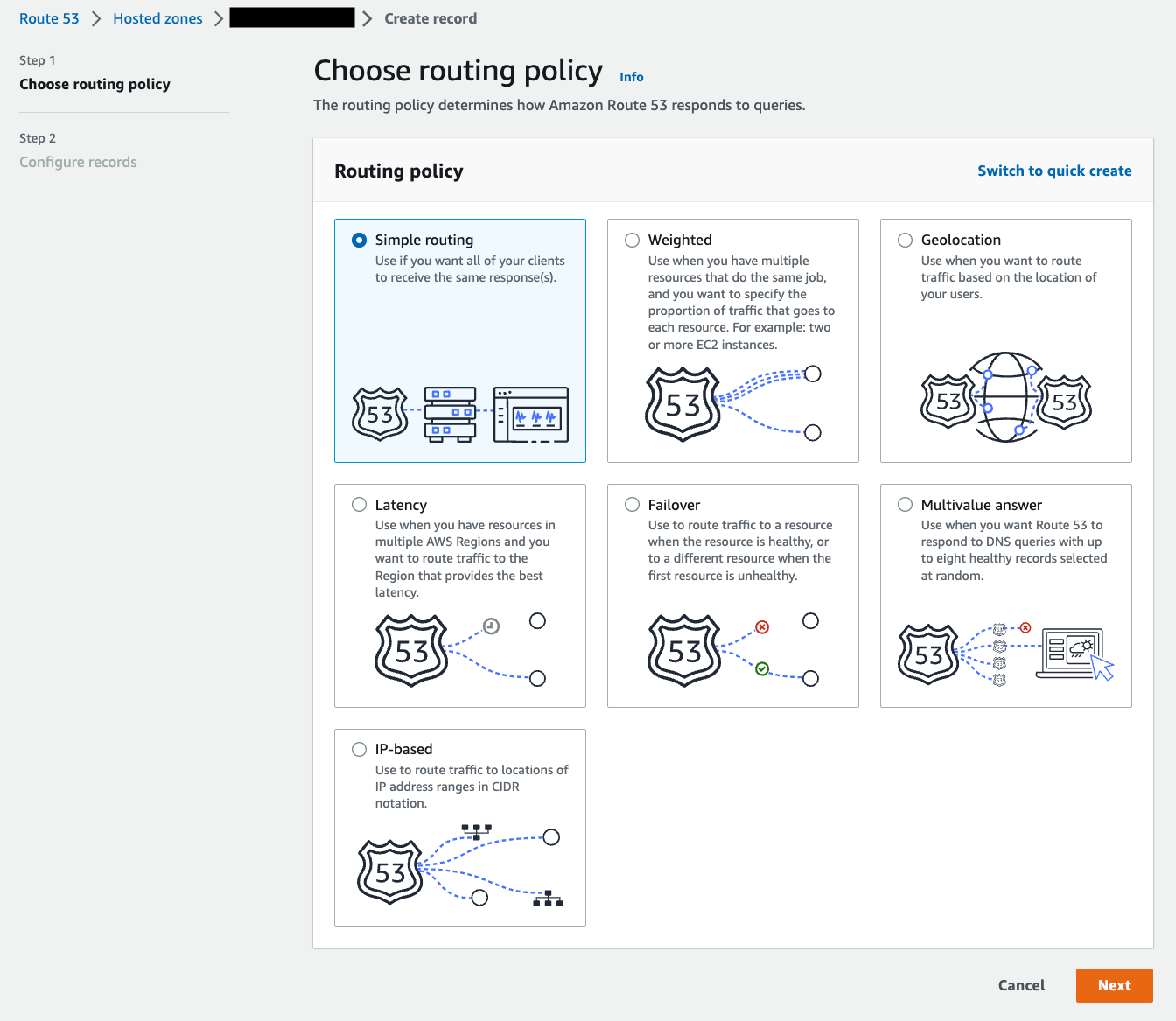 「Simple routing」を選択します(この画面が表示されなかった場合、「Switch to wizard」が右上に出ているのでそれを選ぶとこの画面になります)。