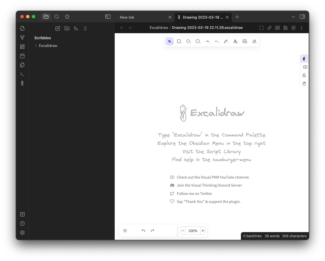 そしてメモに付ける図には Excalidraw プラグインを使っています。