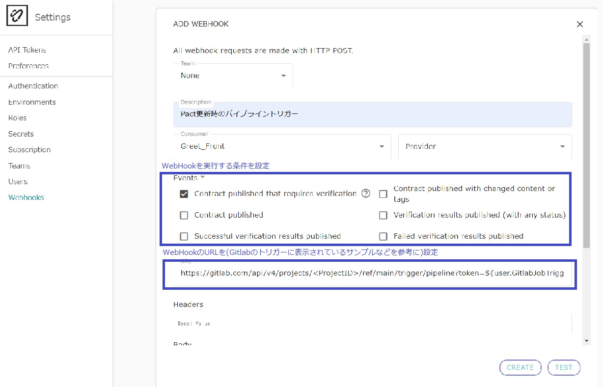 Pact Broker側にWebHookの追加