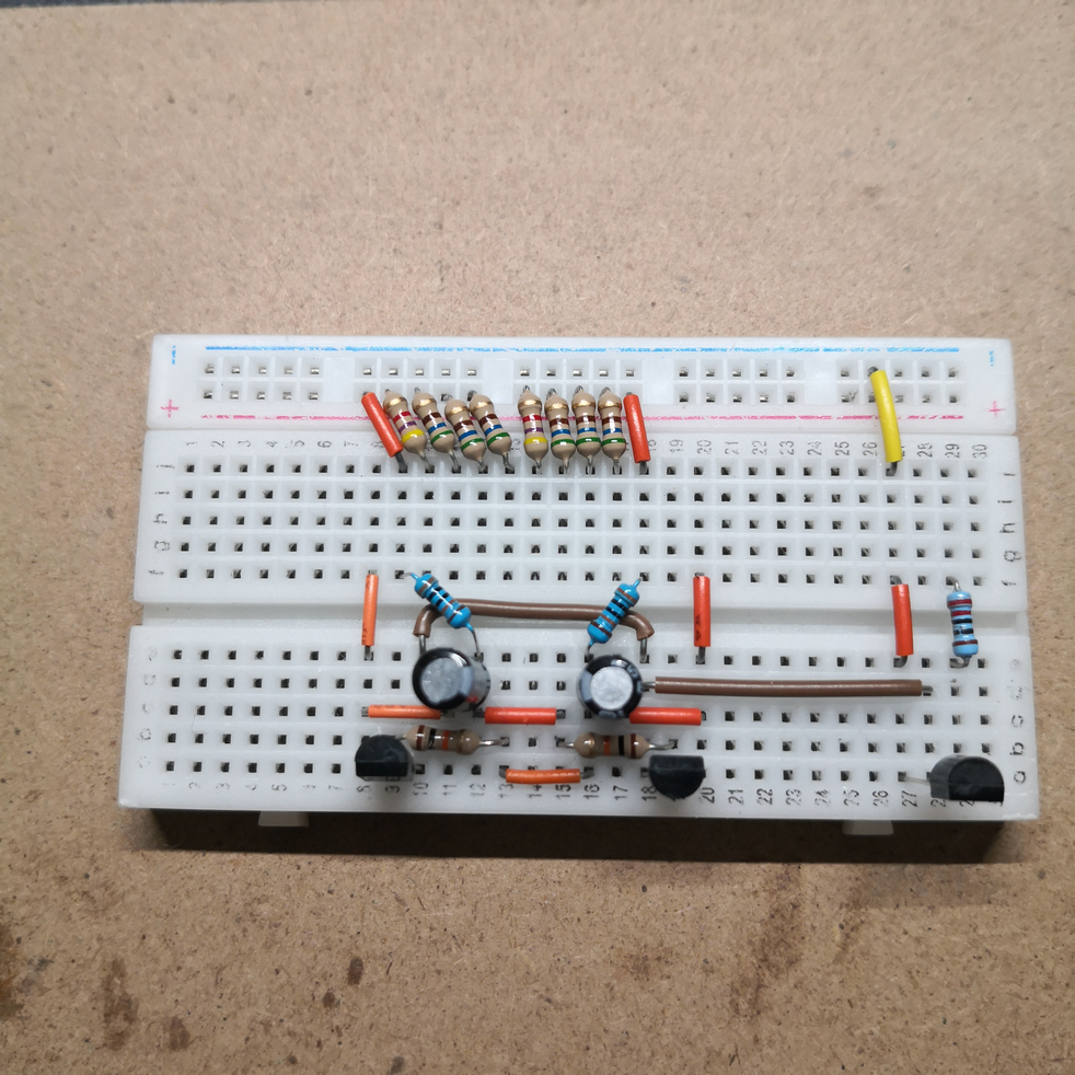 #LEDの点滅は非安定マルチバイブレータという回路を組んで実現しています。回路設計の基礎的なものだそうです。ソフトウェアでの「Hello World」、3Dモデルでの「teapot」、マイコンでの「Lチカ」といったところでしょうか?(それよりも難しい気がします・・・)