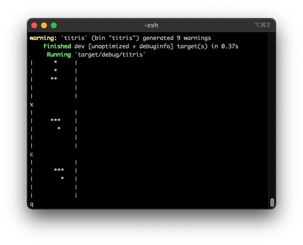 作成した Titris にはリトライの機能がありません。ゲームオーバーになったらウインドウを閉じるしかありません。