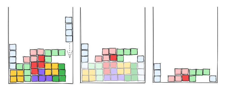 Titris の実装は、簡単すぎず、複雑すぎず、だれでもルールを知っていて、なによりプレーするのが楽しいので、このような用途は最適な題材です。ただ、プログラミング未経験者の方が Rust から始めるのは少しハードルが高いのは事実です。ですので、細かなRustの文法はなんとなくの理解でも、とにかく動くプログラムを作ることで、作ることの楽しさを感じていただきたいと思います。ソースコードは、全体でも 300 行程度で済みますので、プログラムってこんな感じで動いてるのね ということは実感いただけると思います。