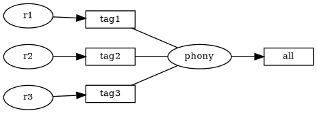 ターゲットtagは3つの依存ファイルtag1、tag2、tag3に依存していて、