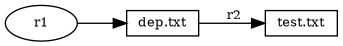 build test.txt: r2 dep.txttest.txtというファイルを、dep.txtというファイルを用いてルールr2によって作成することを表します。