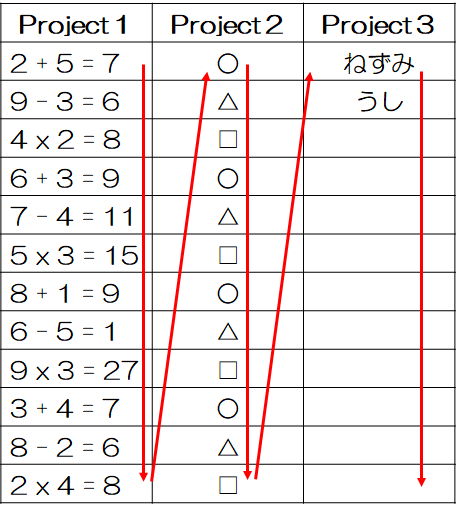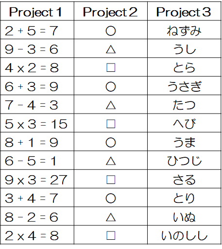 - Project 3: 子から亥まで順に十二支を平仮名で書く