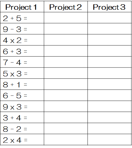 上図のように赤矢印の順番で1つのプロジェクトに集中して、列ごとに書き込みます。