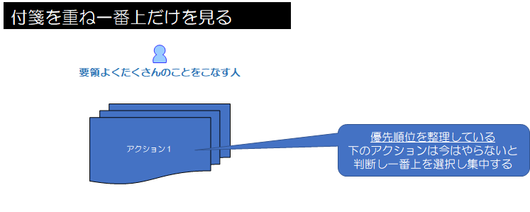 下のタスクは今はやらないと判断し、一番上のタスクを選択し集中しましょう。