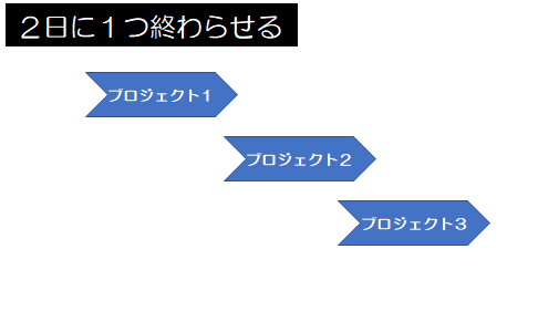 上図のように2日間で1つのタスクを完了させ、逐次タスクを完了させ、6日目に最後のタスクを完了させることを目指します。