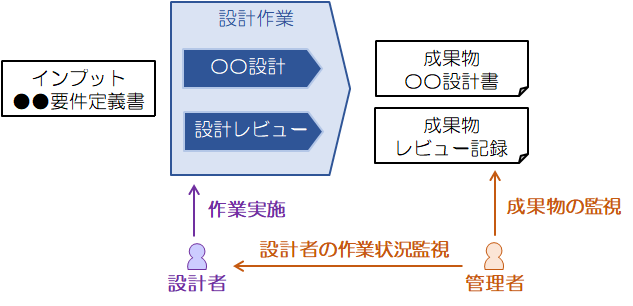 設計者が成果物を作成し、管理者がそれをチェックする場面を想定しています。