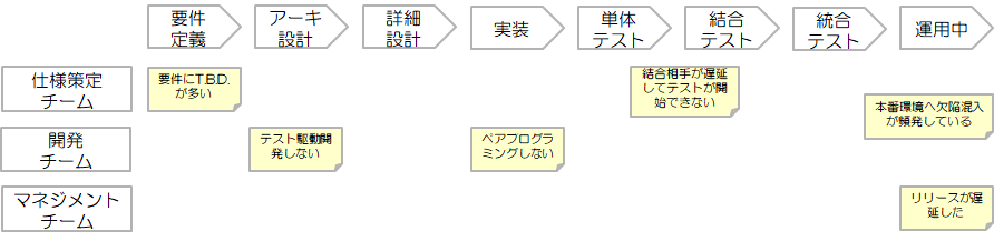 #本記事ではPM現場でよくある問題の一例として、「本番環境への欠陥混入頻発」を選びます。