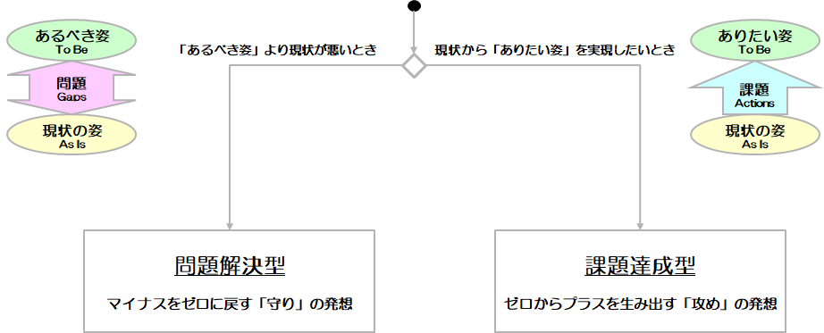 - 問題解決型:現状が「あるべき姿」より悪い → 原因を特定して解消