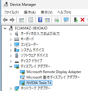 580.88-data-center-tesla-desktop-winserver-2022-2025-dch-international.exe)を実行し、「高速(推奨)」オプションでインストールを進めます。 - インストール後、デバイスマネージャーの「ディスプレイ アダプター」に「NVIDIA Tesla T4」が表示されていることを確認します。