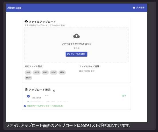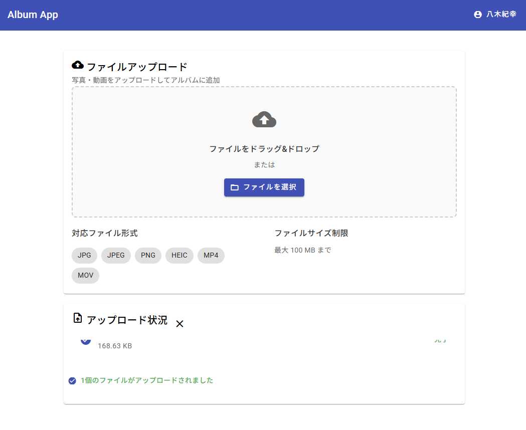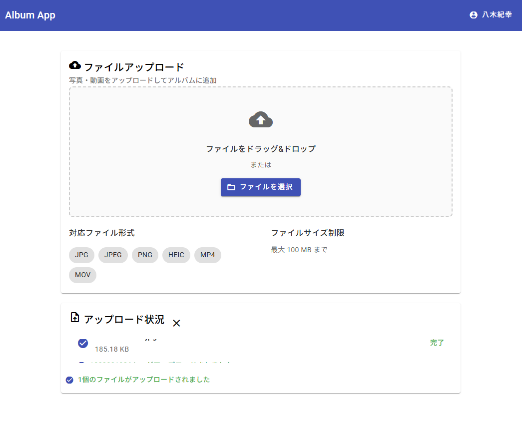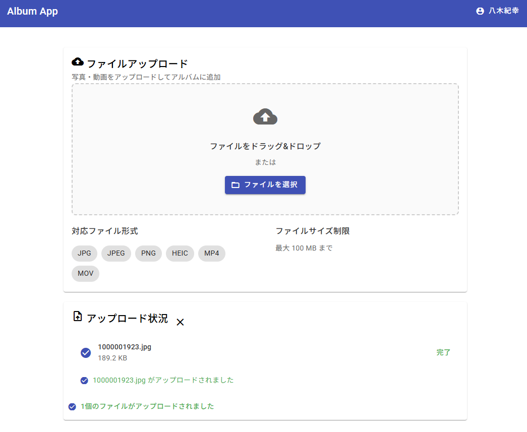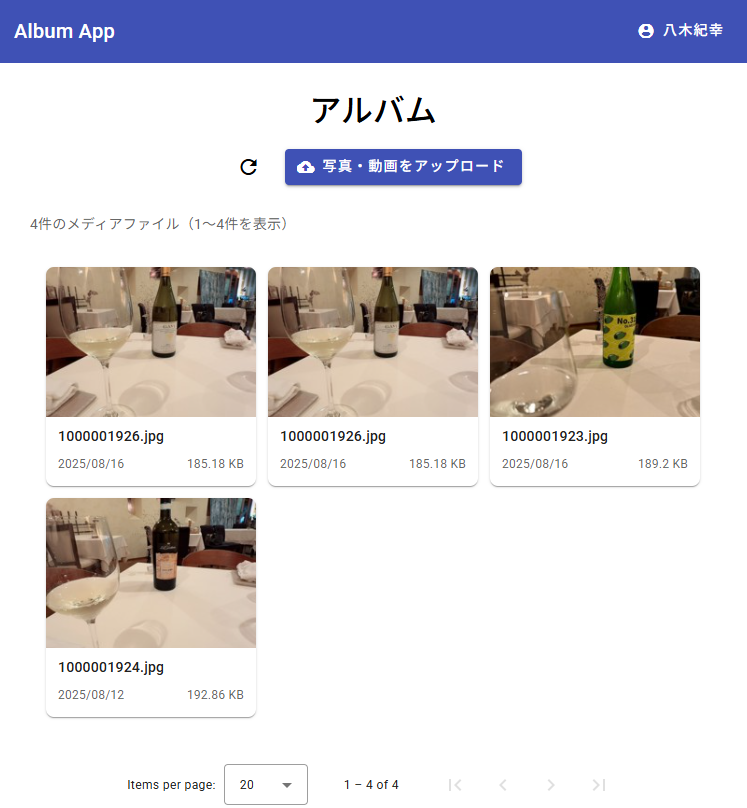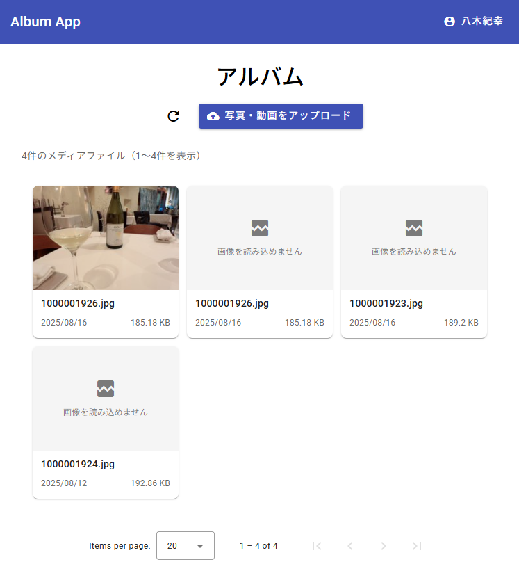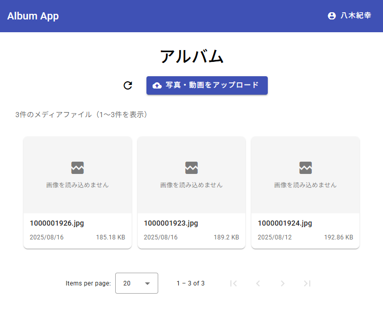 これで、サムネイル画像が正常に表示されるようになります。新しくアップロードされるファイルは自動的にサムネイルが生成され、AlbumListComponentで美しいグリッド表示が可能になります。