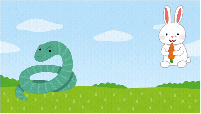 - ウサギがヘビに接触するとゲームオーバー