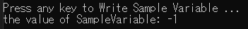 実行の結果,値がコードに記載した値(-1)になっていることを確認します。