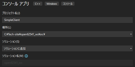 #OPC-UAクライアント用プロジェクトの作成と設定について説明します。