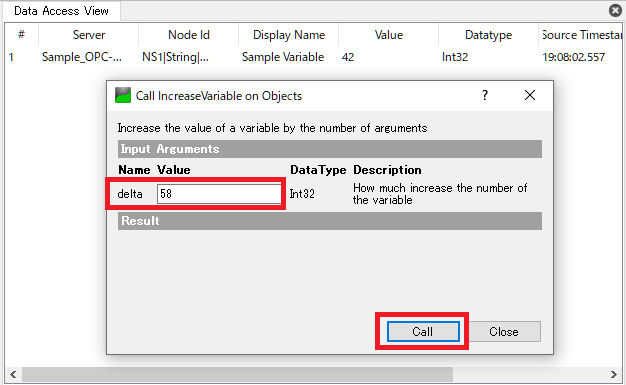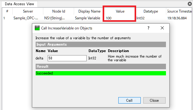 「Address Space」欄にある「IncreaseVariable」を右クリックし,Callを選択します。