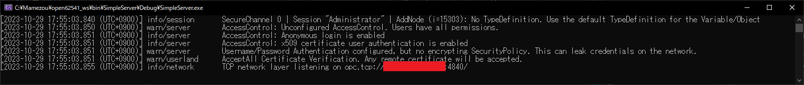 - OPC-UA サーバのサンプル作成