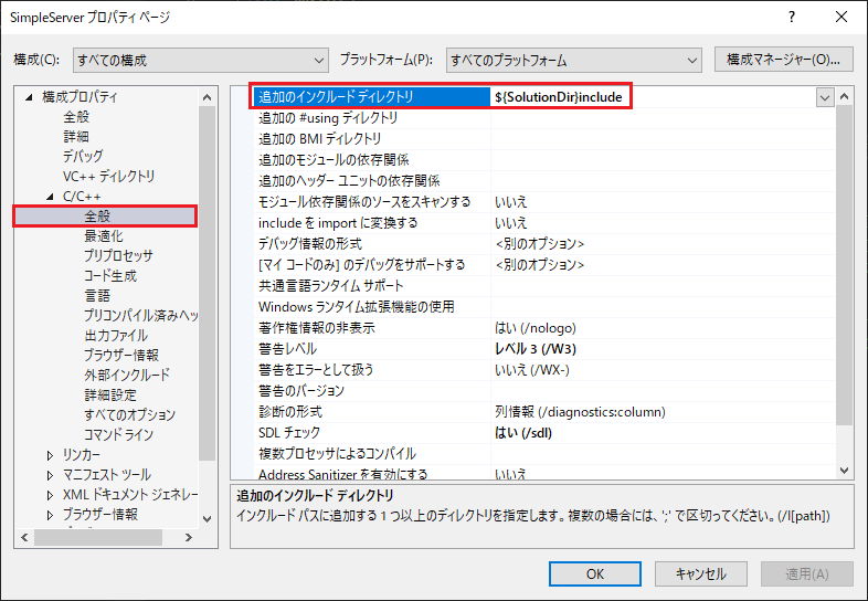 | CMAKE_BUILD_TYPE | Release | ビルドタイプの設定 【Debug/Release/MinSizeRel/RelWithDebInfo】 |