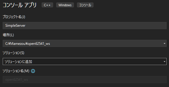 以降では,C:\Mamezou\open62541_wsをソリューションディレクトリと呼ぶことにします。