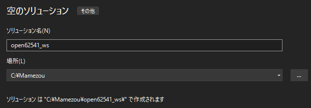 ソリューションフォルダ作成ディレクトリ: C:\Mamezou