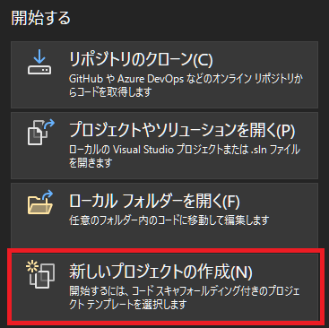 Visual Studioを起動し,「新しいプロジェクトを作成する」を選択します。