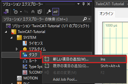 新しいタスクを作成します。「SYSTEM」>「タスク」を右クリックして「新しい項目の追加」をクリックしてください。