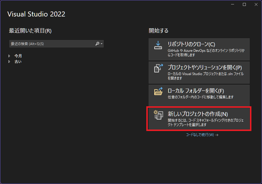 「ソリューションとプロジェクトを同じディレクトリに配置する」にチェックを入れます。