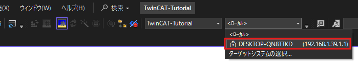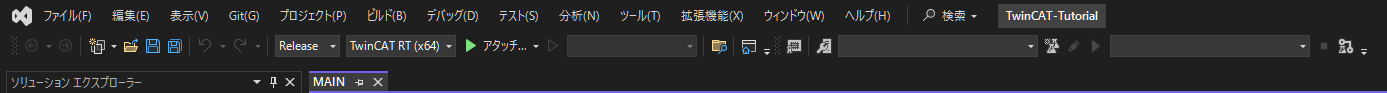 これにより,IDEの上部にTwinCATに関する表示が増えます。