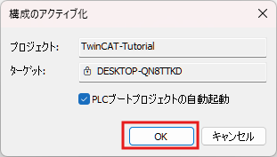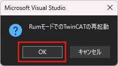 TwinCATを再起動するか尋ねられるため,「OK」を押して再起動します。