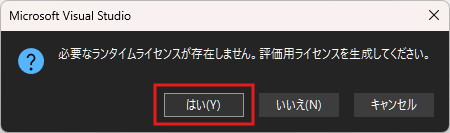 初回書き込み時は評価ライセンスの生成を促されるため,「はい」を選択します。