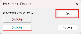 表示されたものと同じ文字列をテキストボックスに入力し,OKボタンを押します。