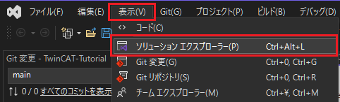 XAEShellもしくはVisualStudioの画面左側にソリューションエクスプローラーが表示されない場合は,下記の項目をクリックしてください。