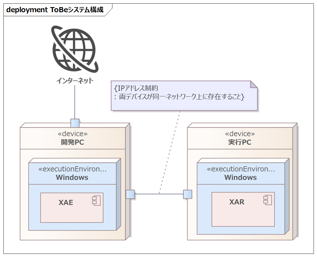 - パターンB:XAEは開発PCに,XARは実行PCに存在する